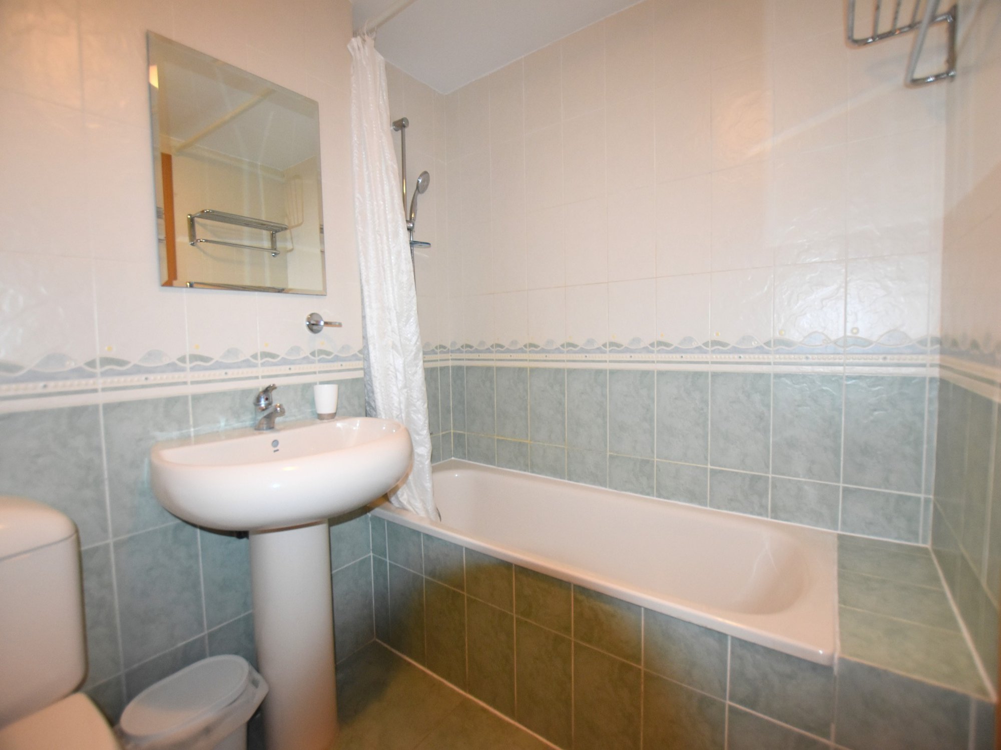 Dispone de 2 dormitorios (uno con aire acondicionado) y 2 baños completos: uno con ducha, lavabo e inodoro y otro con bañera, lavabo e inodoro.